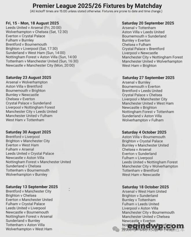 北京时间今天下午16点,英超官方将公布下赛季赛程。但早在昨天,已经有一份据称是提前泄露的赛程在网上流传,但由于存在多个明显错误,已经被证实的错误的。