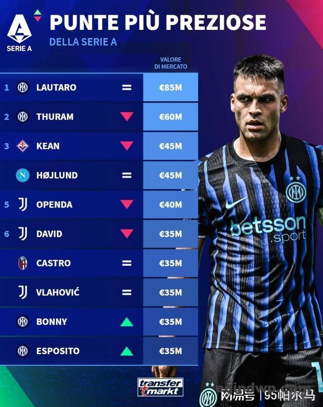 在最新一期意甲全队身价排行榜上,总身价达7.43亿欧元的国米坐稳了头把交椅,其中个人身价达到8500万欧的劳塔罗贡献值最大,虽然暂时丢掉了亿元先生的头衔(巅峰时的自己1.1亿欧元),一直在全力以赴地倾注热情。