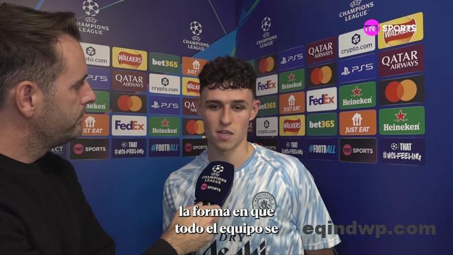 本赛季欧冠联赛阶段第4轮,曼城主场4-1战胜多特蒙德。福登接受了TNT体育的赛后采访。