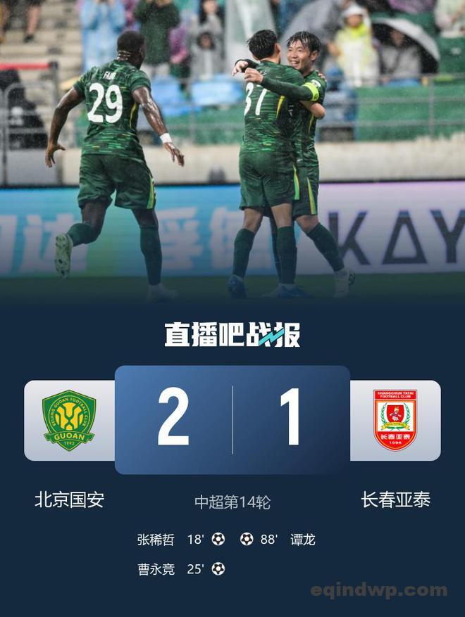直播吧6月14日讯 北京时间6月14日19:00,中超联赛第14轮,北京国安坐镇工人体育场迎战长春亚泰。上半场吴亚轲送礼,张稀哲破门,曹永竞再下一城,北京国安暂2-0长春亚泰;下半场法比奥-阿布雷乌失良机,贝里奇伤退,谭龙比赛尾声阶段破门,最终北京国安2-1长春亚泰,开赛至今不败,仍居积分榜第三位。