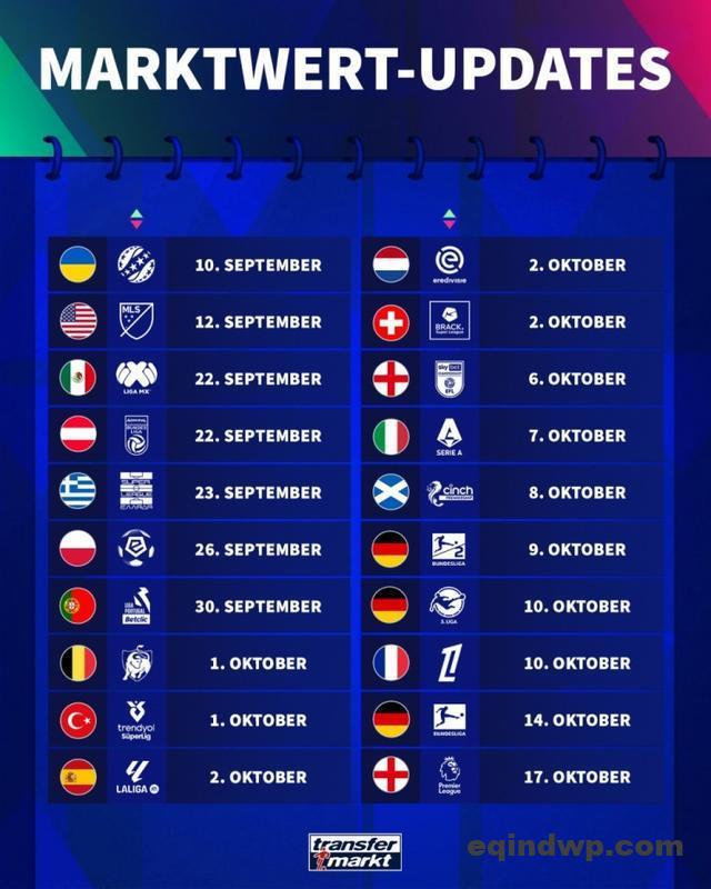 直播吧9月9日讯 德转市场今日更新,公布了各联赛球员德转身价更新的时间,其中英超联赛将在当地时间10月17日更 […]