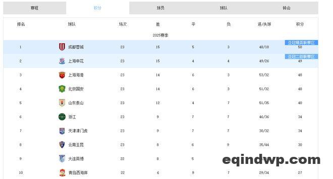中超25赛季23轮赛程过后,积分榜前五依次是积50分的成都蓉城,积49分的上海申花,积48分的海港和国安,积40分的山东泰山。