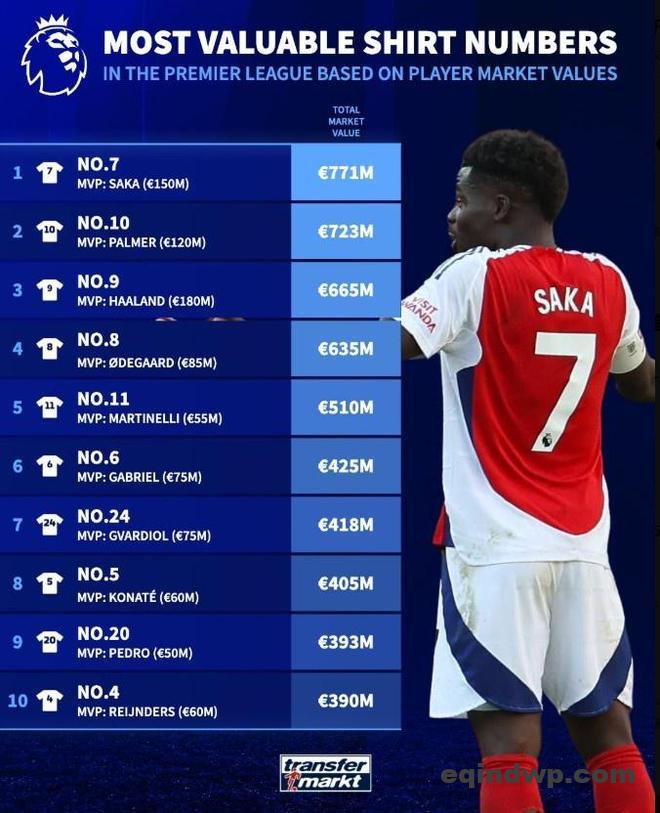 直播吧9月9日讯 德国转会市场对英超球星球衣号码的市场价值进行排行,其中身披7号球衣的萨卡总市场价值达到7.7 […]