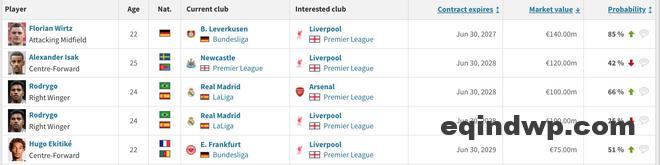 英超夏窗已经开启,利物浦成为了今夏最活跃的球队之一。在已经敲定弗林蓬和佩奇的加盟后,利物浦仍有许多转会传闻。德转显示,目前市场上身价最高的5笔转会传闻中,4笔的下家为利物浦。