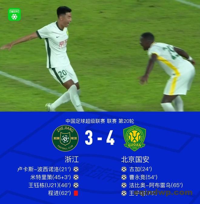 中超第20轮,浙江队主场3-4遭北京国安逆转,遭遇本赛季中超主场首败。