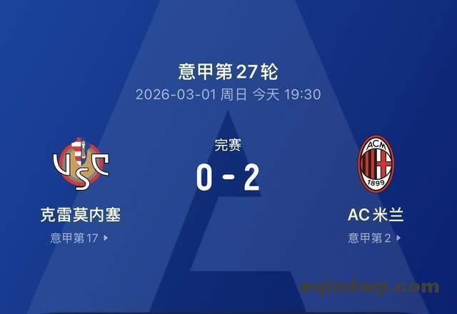 北京时间3月1日19:30,2025-26赛季意甲第27轮迎来了一场焦点大战:克雷莫内塞VSAC米兰。