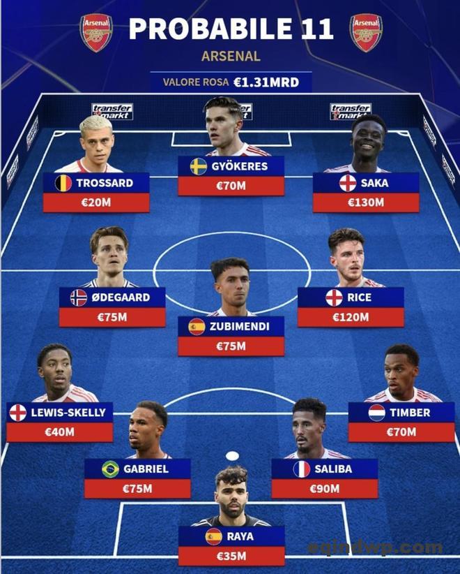 阿森纳 | 预测首发11人(阵容身价:13.1亿欧元)