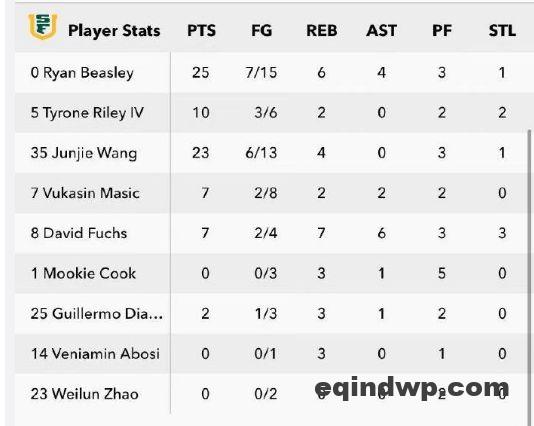 至于赵维伦仅替补登场3分27秒,2中0均是外线三分出手不中颗粒无收,且得分,篮板、助攻、抢断和盖帽5项数据均是0。