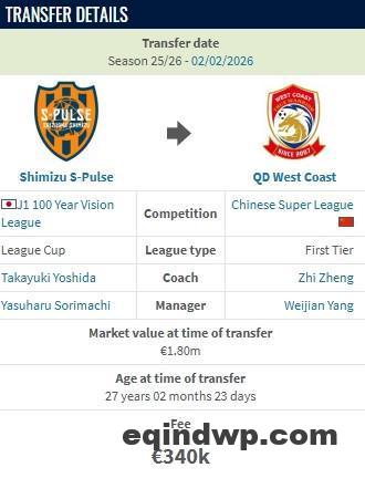 德转显示,阿齐兹从清水心跳加盟青岛西海岸的转会费为34万欧。