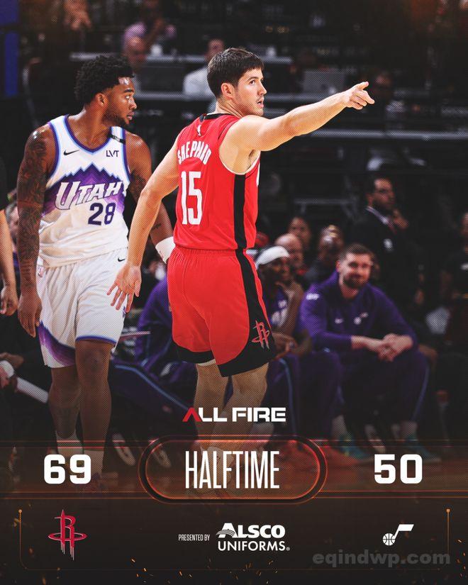 火箭队的杜兰特上半场得到18分,史密斯得到16分,汤普森得到12分和5个篮板;爵士队的威廉姆斯得到12分和6个篮板,菲利波维斯基得到12分和4个篮板,森萨博得到10分和3次助攻。