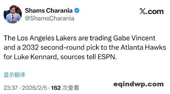 根据ESPN名记Shams报道,湖人与老鹰完成2换1交易,湖人将文森特和2032年次轮签送至老鹰,换回神射手肯纳德,有望提升湖人的外线投射能力。