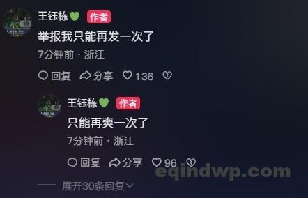 北京时间3月22日,王钰栋将照片中的海牛球迷打码后,再度发出,并配文:继续发继续爽,并在评论区表示:举报我只能再发一次了,只能再爽一次了。