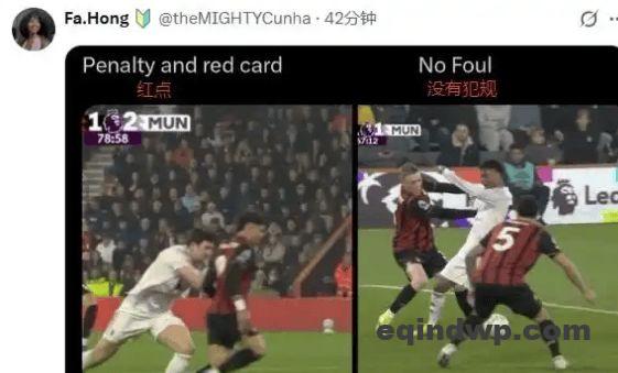 同样是拉人,一个连犯规都不算,一个直接红点套餐。曼联不仅被罚下一人,还眼睁睁看着比分被扳成2-2。少打一人+丢分,双重打击。