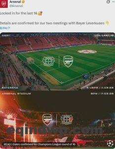 官方:阿森纳将在欧冠八分之一决 [...]