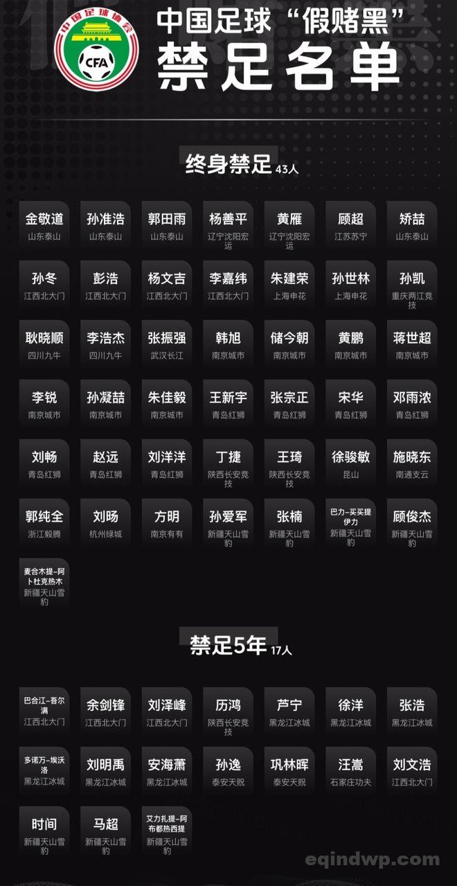 而今年1月29日,足协又公布了第2批涉案人员的处罚,76人被罚,陈戌源、杜兆才、李铁、王小平、郝伟、张鹭、秦升等73人终身禁足。