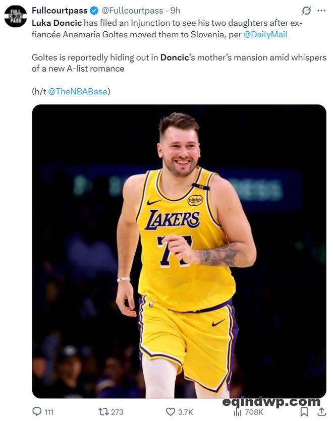 赛前又传来了东契奇的噩耗,他已经申请强制执行令来探望他的两个女儿,因为他的未婚妻戈尔特斯将她们带回了斯洛文尼亚,目前戈尔特斯正躲藏在东契奇母亲的豪宅里,同时有传言称他与某位明星绯闻缠身。(悲伤体育生愈发的凄凉)