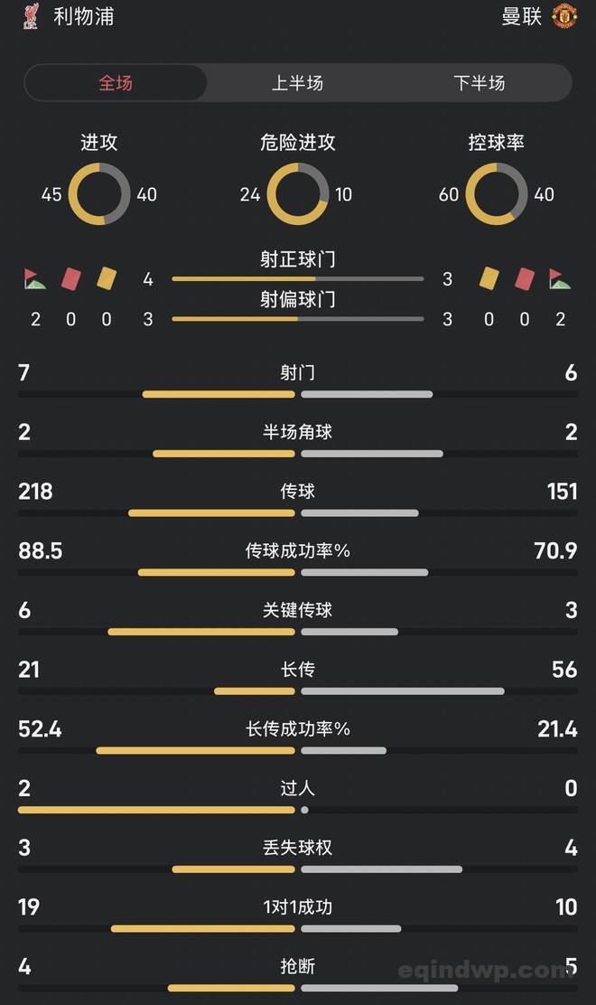 双红会半场数据对比