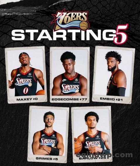 76人:格莱姆斯、巴洛、恩比德、埃奇库姆、马克西