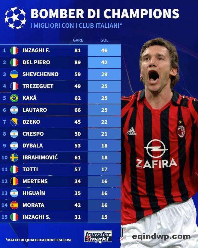 北京时间3月21日,德转统计出了意甲球员欧冠历史射手榜,菲利波-因扎吉以46球位列第一,现役球员中劳塔罗排名最高,他以25球位列第6。