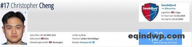 直播吧09月19日讯 德转更新了挪威联赛的身价,华裔边后卫郑泽彦身价继续上涨至120万欧。