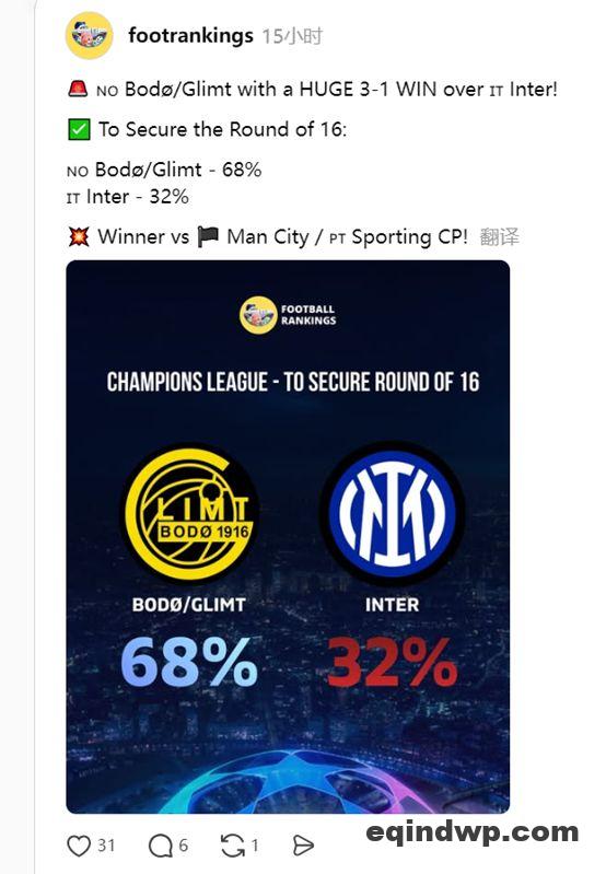 综上,博德闪耀可能不是一支综合实力超群的强队,但具有在一场比赛在爆种击溃顶级强队的神经质特性。如果曼城都可以战胜,以同样的比分再胜国米又算得了什么?