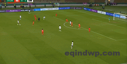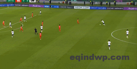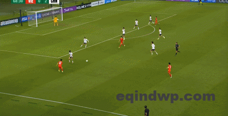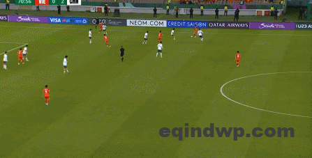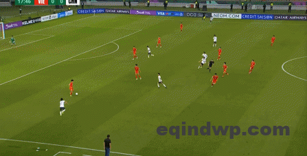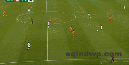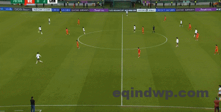 到了另外一边的二防二场景里,越南队进行换位,但右翼卫杨希在兼顾位置的同时,看准时机坚决前顶,便重新夺回了球权: